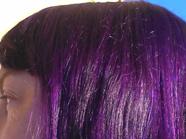 You rub the object, and feel an odd tingling sensation on your head. You pull a small hand-held mirror out of your backpack to examine yourself - and find that your hair has turned purple!
